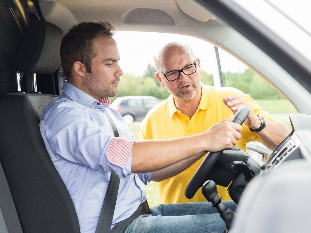 Nehmen Sie Platz in Ihrem Fahrzeug! Wir schauen uns an, wie Sie sitzen und ob Sie Ihr Lenkrad richtig im Griff haben. Danach fahren Sie einen Parcours und wir zeigen Ihnen, wie das noch besser geht. Dabei achten wir besonders auf den „Toten Winkel“.