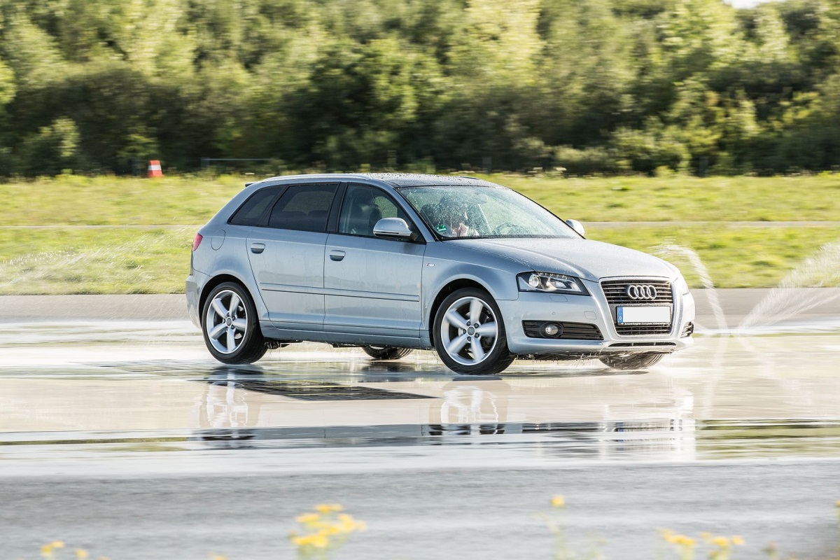 Jetzt geht´s rund. Wir fahren mit Ihnen in die Kreisbahn und starten mit Driftübungen auf glatter Fahrbahn. Sie probieren verschiedene Fahrtechniken aus und schaffen mit den Tipps und Tricks der Profis Ihre ersten Driftmeter.
