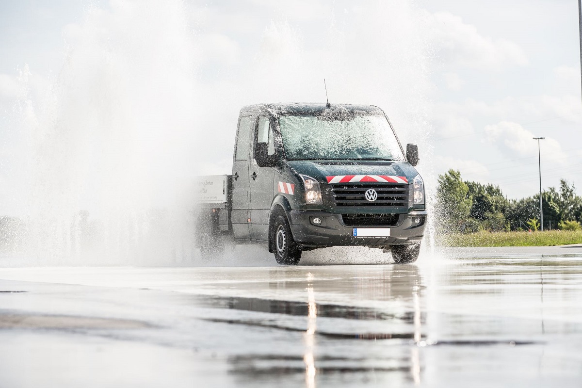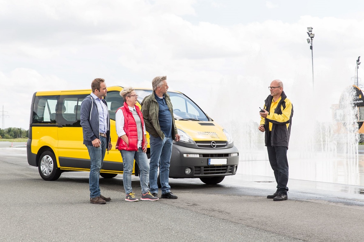 Sie wissen zwar, dass gleich etwas auf Sie zukommt, aber nicht wann und wo. Bei dieser Übung kann Ihr Fahrzeug maximal nass werden, wenn Sie den computergesteuerten Wasserhindernissen nicht rechtzeitig ausweichen. Hier lernen Sie, wie man mit einem gezielten Lenk- und Bremsmanöver dem Hindernis ausweicht.