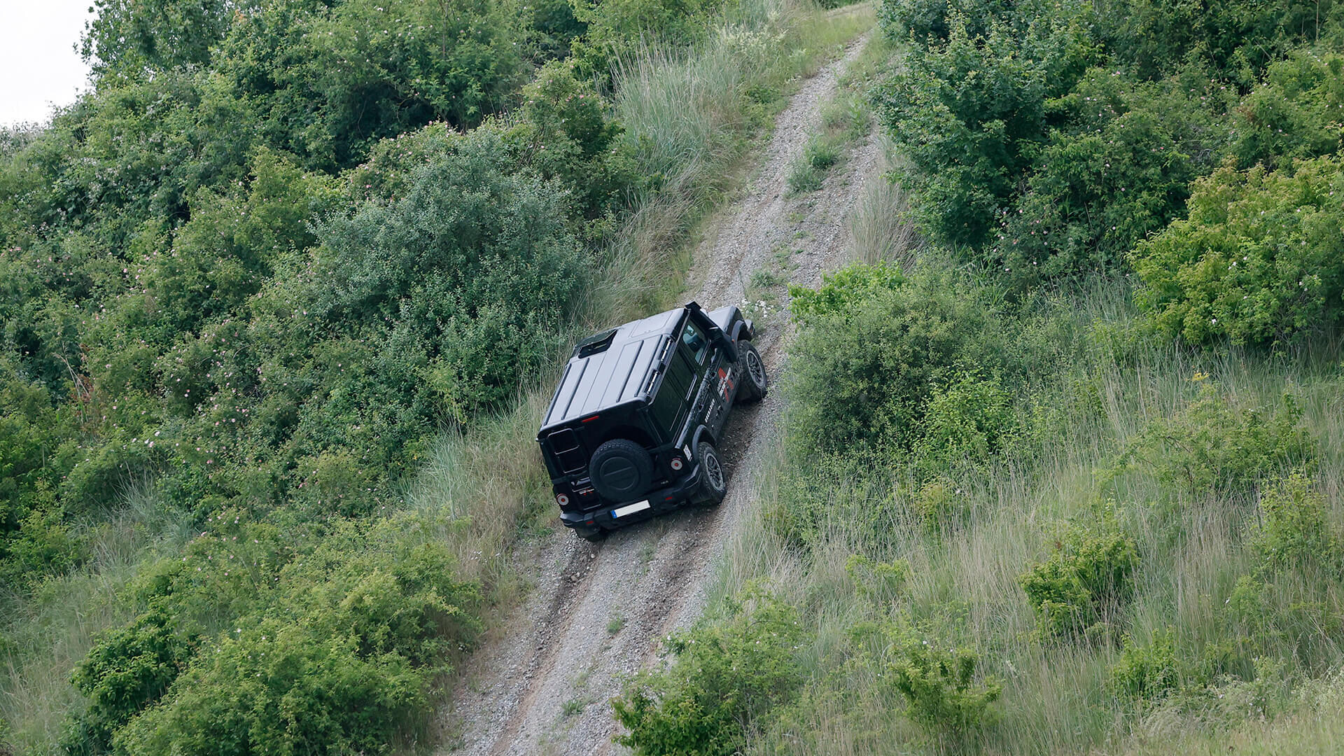 Der Berg ruft! In unserem Off-Road-Gelände fordern wir Mensch und Maschine heraus. Wenn es im Wasserfall steil bergauf geht, hält man auch schon mal die Luft an. Aber das üben wir ja, mit Bergauf- und Abfahrten bei bis zu 40° Schräglage.