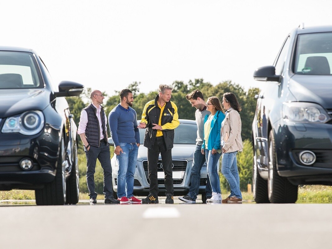 Jetzt geht’s rund. Und zwar so lange, bis Ihr Fahrzeug kurz davor ist auszubrechen. Das klingt gefährlich, ist es aber nicht. Denn Sie haben ja unsere Profis dabei. Außerdem unterstützen Sie elektronische Fahrhilfen, die in nahezu jedem Fahrzeug eingebaut sind.