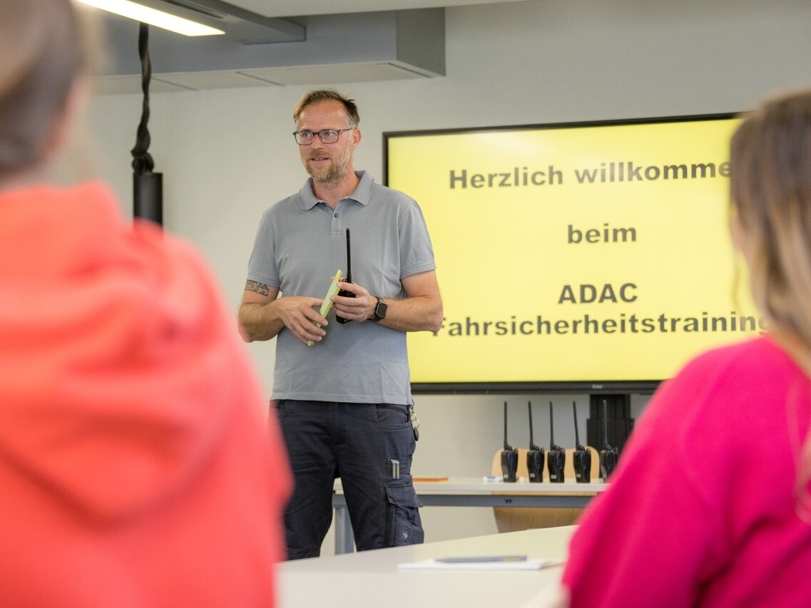 Erst ein bisschen Theorie: Bei der Begrüßung lernen Sie Ihre:n Trainer:in und die anderen Teilnehmer:innen kennen und wir sprechen über Ihre Fahrerfahrungen und Wünsche an das Training. Fahrphysik und die Technik, die Sie im Notfall unterstützt, sind natürlich auch Thema!