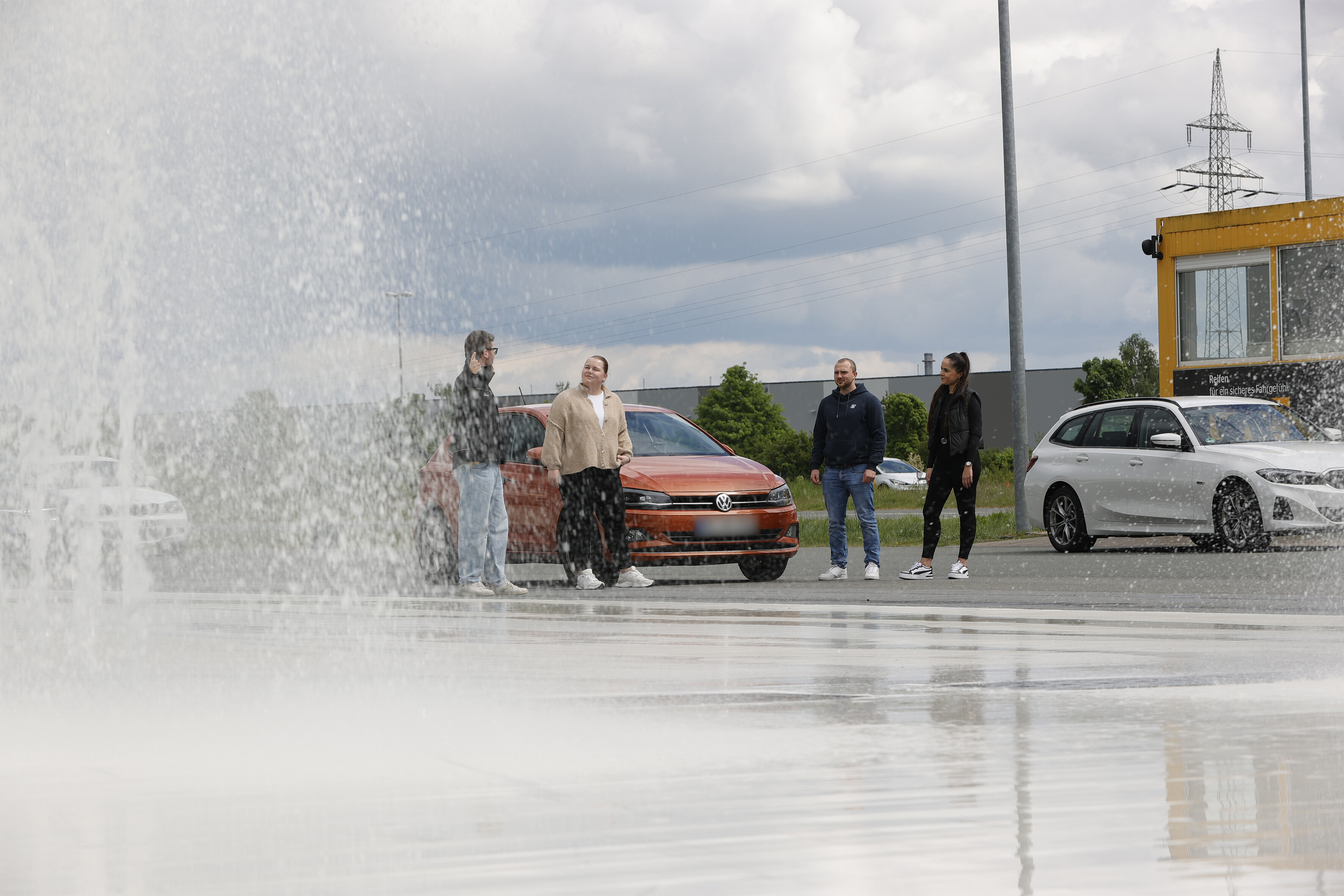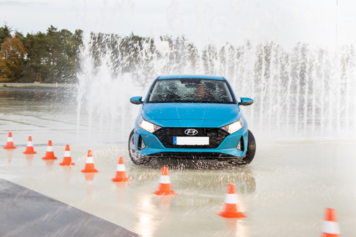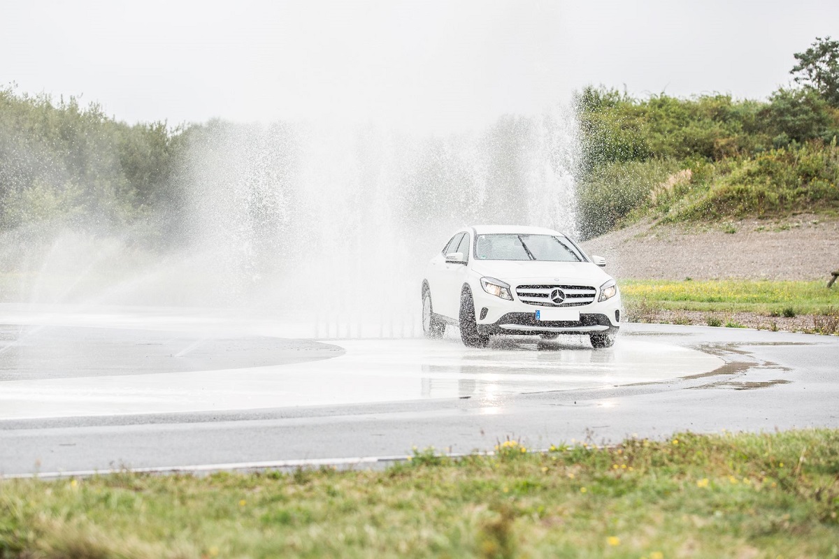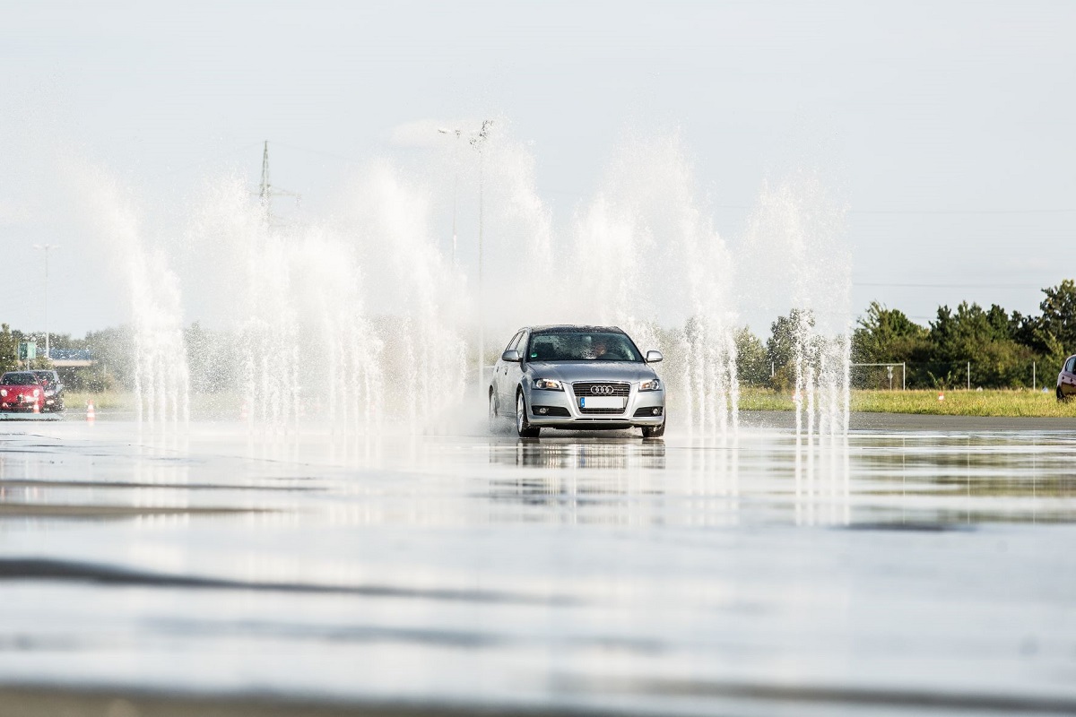 Sie wissen zwar, dass gleich etwas auf Sie zukommt, aber nicht wann und wo. Bei dieser Übung kann Ihr Fahrzeug maximal nass werden, wenn Sie den computergesteuerten Wasserhindernissen nicht rechtzeitig ausweichen. Hier lernen Sie, wie man mit einem gezielten Lenk- und Bremsmanöver dem Hindernis ausweicht.