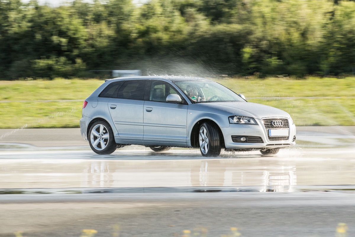 Was passiert, wenn Ihr Fahrzeug plötzlich ausbricht? Auch das kann man üben. Dafür bekommt Ihr Fahrzeug einen kontrollierten Impuls auf die Hinterachse. Doch Sie haben inzwischen gelernt, wie man in Gefahrensituationen richtig bremst und gegenlenkt, damit Ihr Fahrzeug spurstabil bleibt.